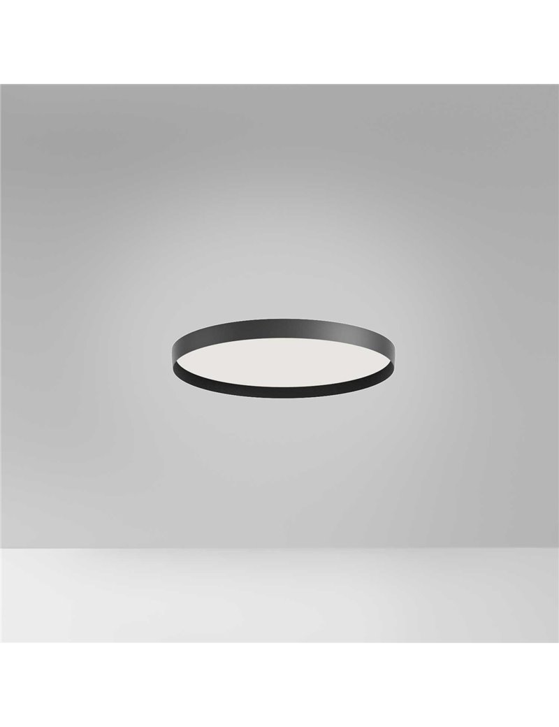 Montatura in alluminio satinato nero. Diffusore in metacrilato bianco opale. Sorgente luminosa led dimmerabile a taglio di fase tramite dimmer esterno+push (non inclusi).,Gea Luce