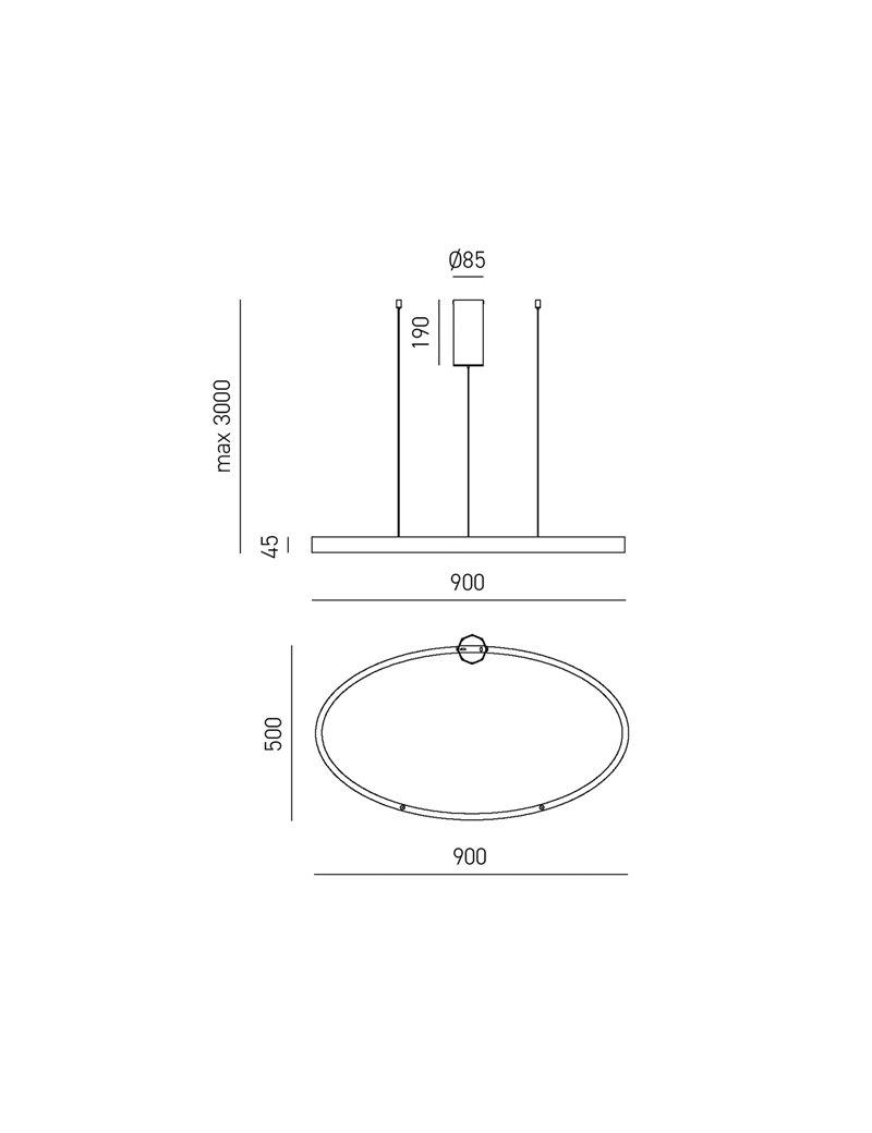 Criseide sospensione piccola ovale led nero 30W+30W