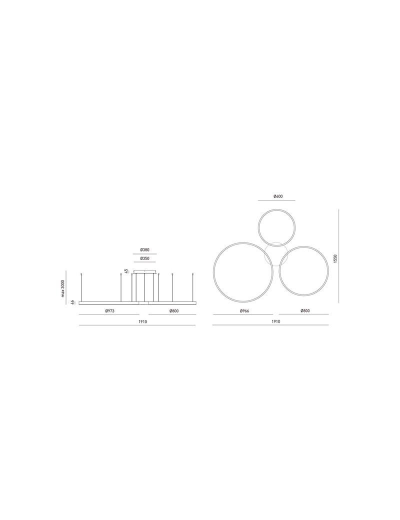Criseide sospensione triplo anello decentrabile led nero 125W(35W+40W+50W)