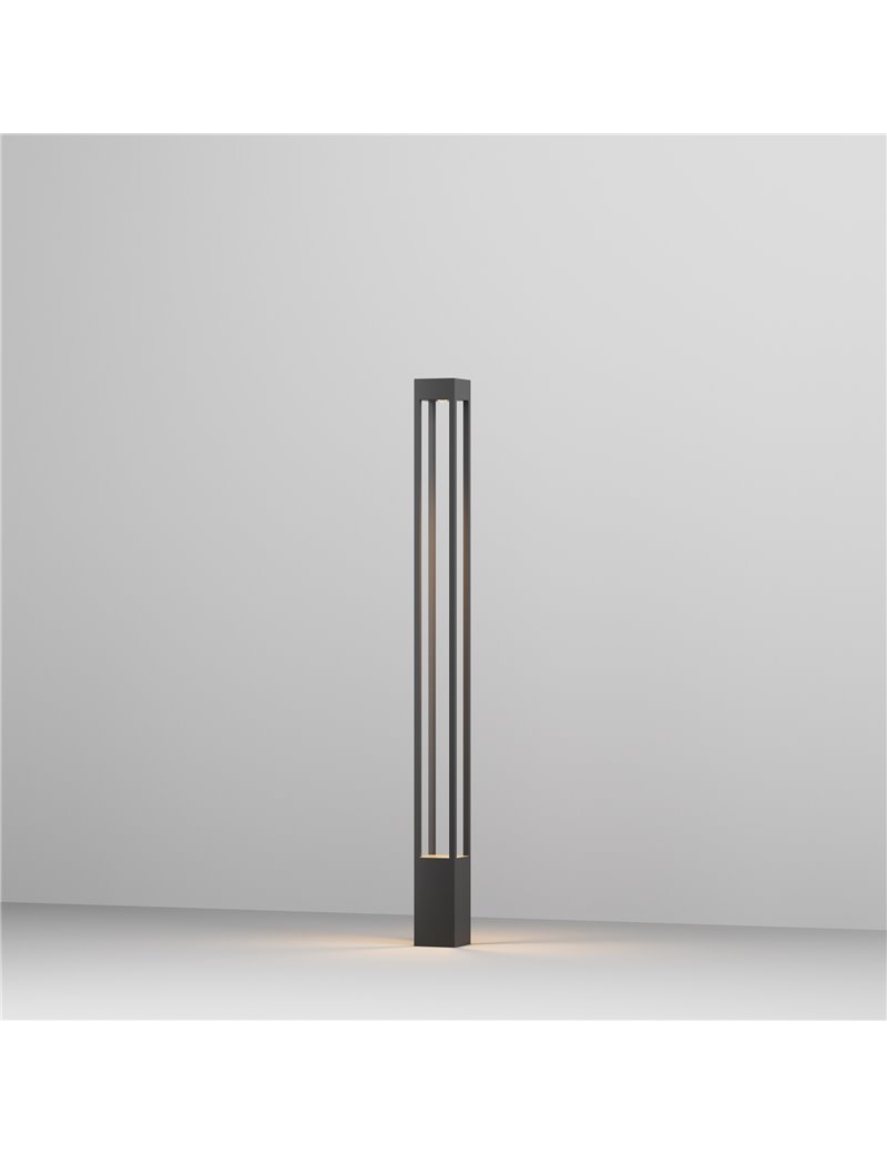Serie di lampioni di varie altezze. Corpo in metallo, colore – grafite. Elevato grado di protezione IP65, protezione dalla corrosione e dagli sbalzi di temperatura. Sorgente luminosa a LED, temperatura di colore 3000K. Geometria rigorosa nel design.,O424FL-L20GF
