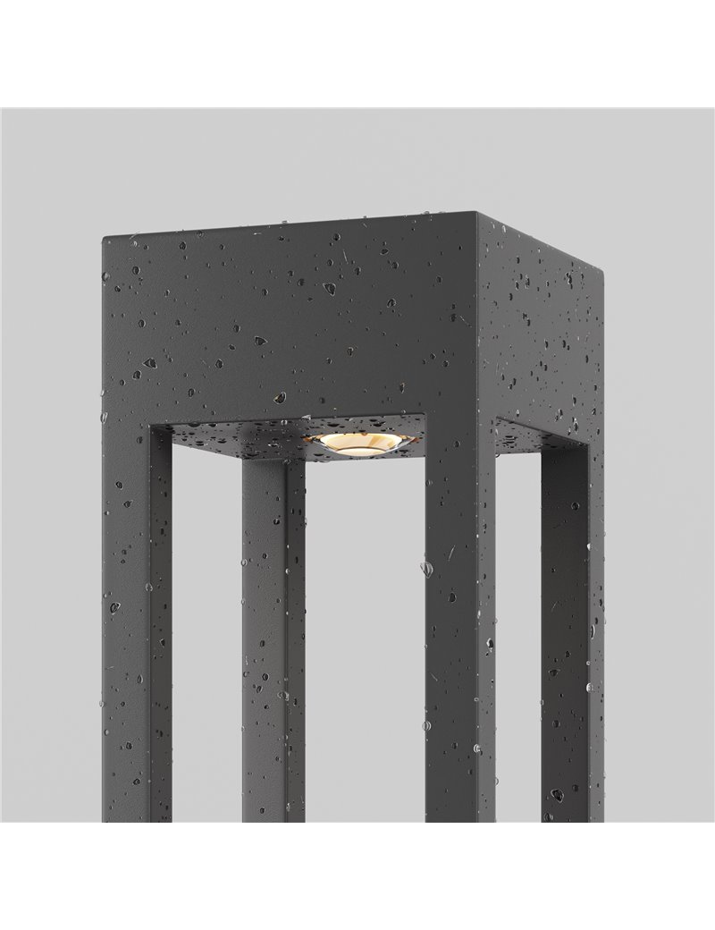 Serie di lampioni di varie altezze. Corpo in metallo, colore – grafite. Elevato grado di protezione IP65, protezione dalla corrosione e dagli sbalzi di temperatura. Sorgente luminosa a LED, temperatura di colore 3000K. Geometria rigorosa nel design.,O424FL-L25GF